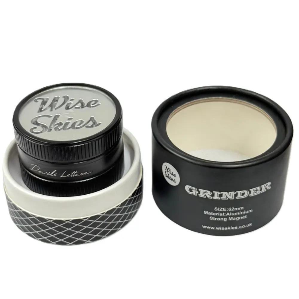 Each grinder also comes Complete with Cut out Wise Skies Logos instead of Printed designs meaning that you won't have to worry about them wearing off or fading!