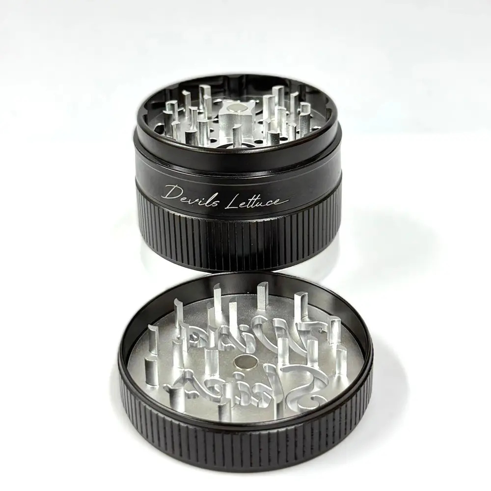 The Devil's Lettuce Grinder comes equipped with Strong and sharp teeth to assure a smooth and Precise Grind for a Uniform grind that will leave even the toughest Rollers with a tear in their eye!