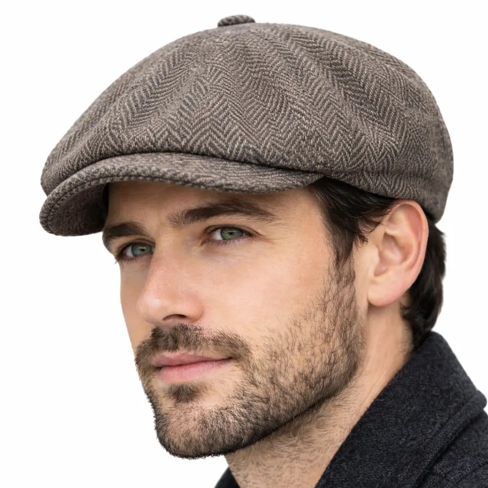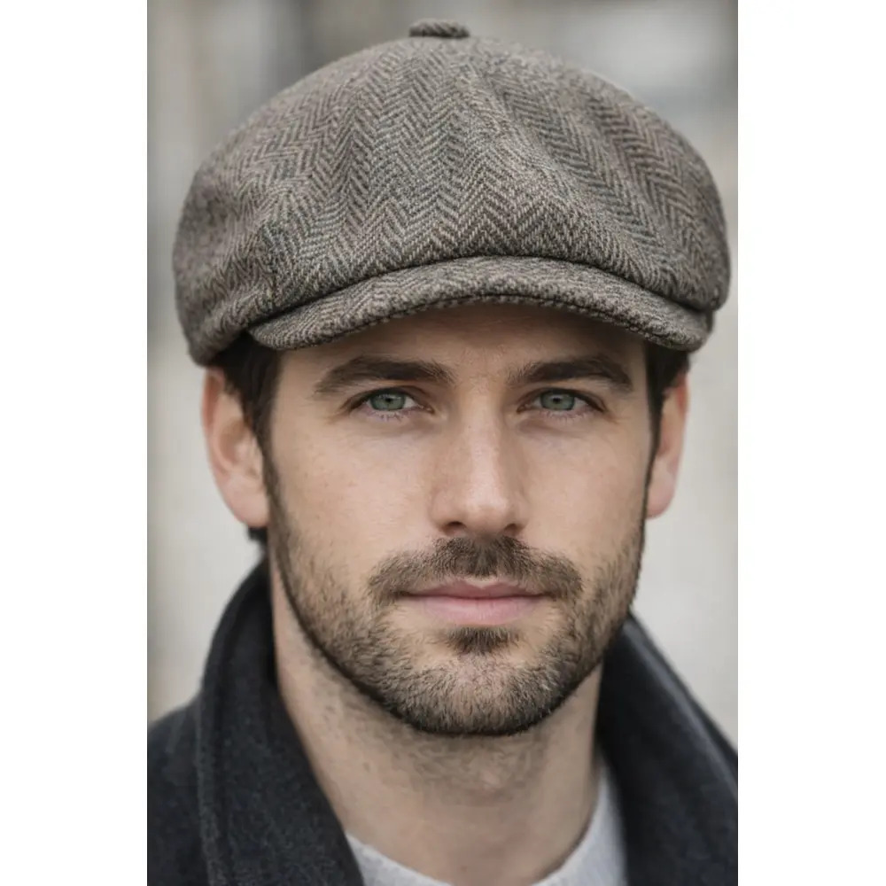 Tweed Flat Cap Herringbone Newsboy Baker Boy Hat
