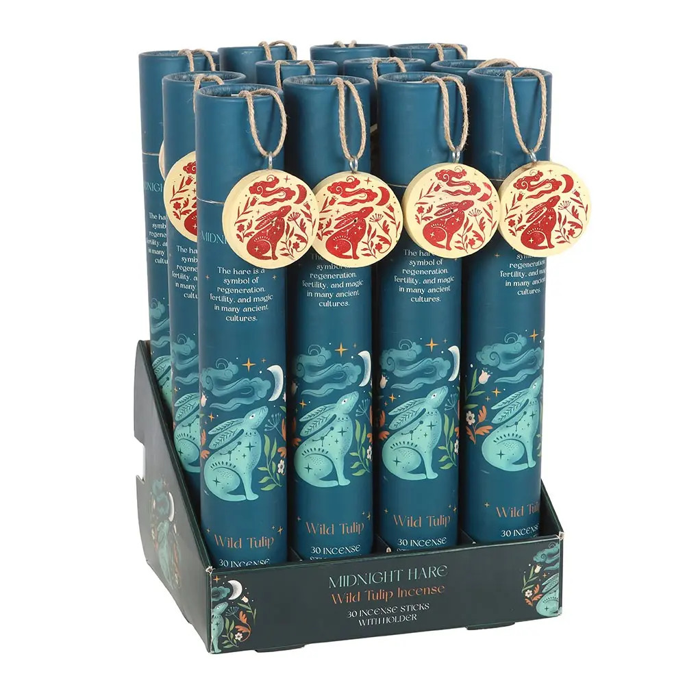 SKU: SET_98724The Midnight Hare Wild Tulip Incense offers a beautifully crafted aromatherapy experience inspired by folklore and nature. Each tube contains 30 premium incense sticks paired with a holder, making it perfect for gifting or personal use. The fragrance of wild tulip delivers a soft, floral aroma that promotes relaxation, grounding, and emotional balance. Featuring artwork of the mystical hare—an ancient symbol of fertility, regeneration, and magic—this incense set is ideal for meditation, spiritual spaces, or enhancing the ambience of your home.
