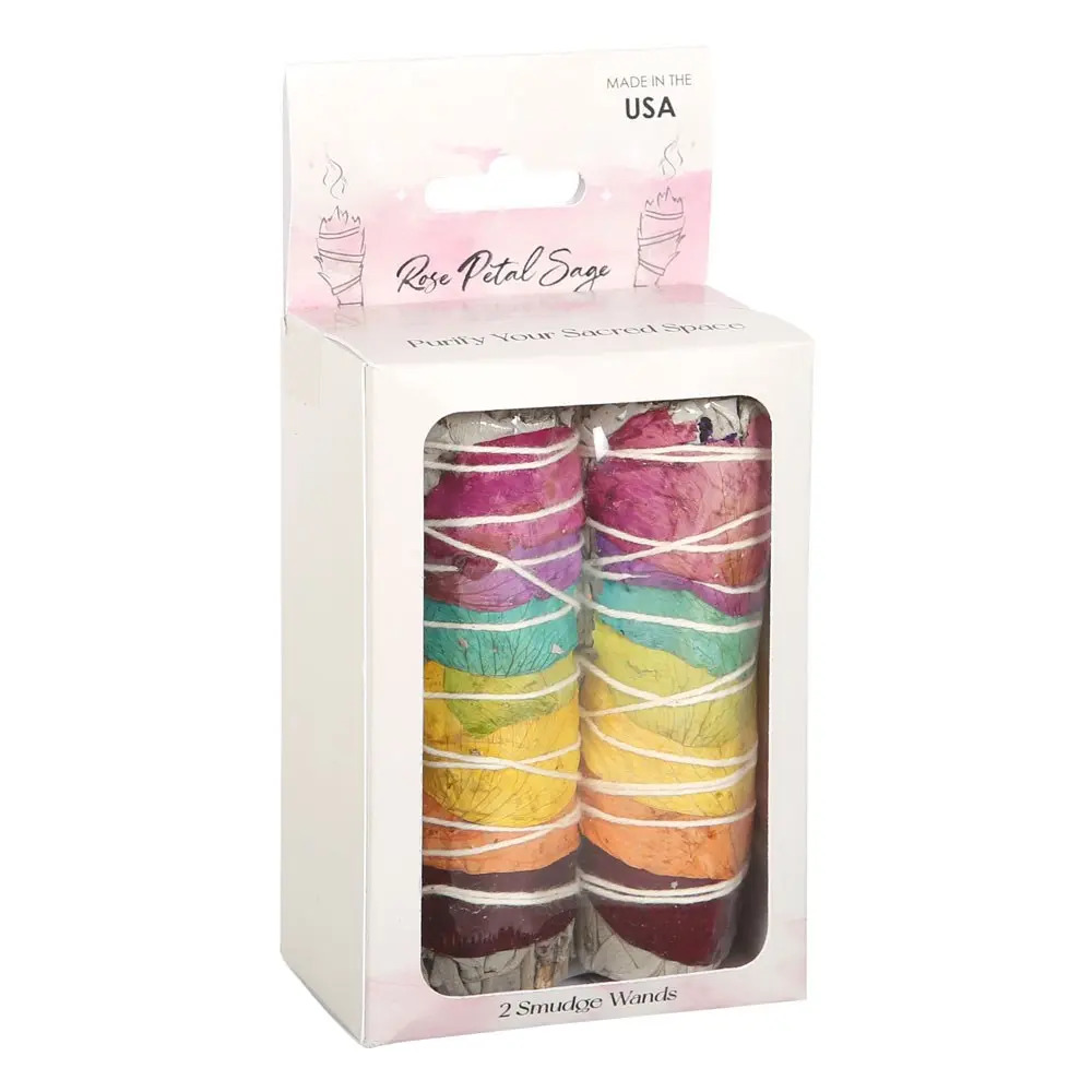 This Rose Petal Sage Smudge Wand Set includes two beautifully wrapped sage bundles adorned with vibrant, multi-coloured rose petals. Each smudge wand combines the cleansing power of white sage with the uplifting, heart-opening energy of rose petals. The colourful petals not only create a visually stunning finish but also add a gentle floral essence to your cleansing ritual. Perfect for meditation, energy clearing, intention setting, or gifting to someone who loves spiritual wellness.