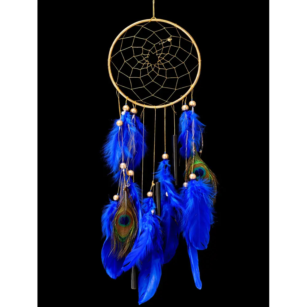Blue Dream Catcher with Chimes Wall Hanging Feather Boho