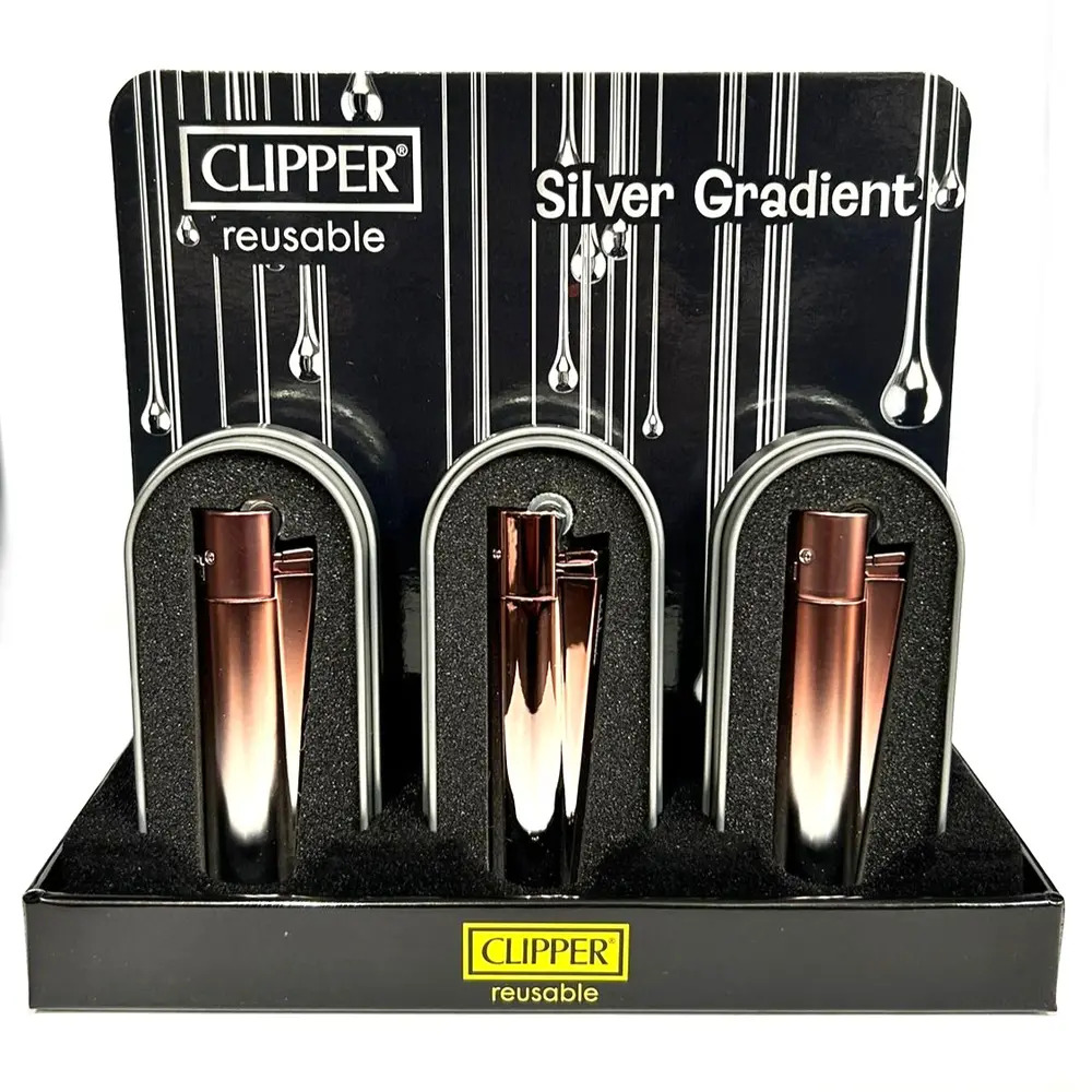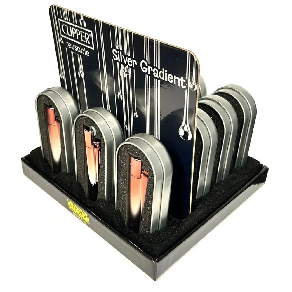 SKU: CM0C138UKXElevate your smoking accessories with the sleek and stylish Metal Clipper Lighter in Silver Gradient. This premium metal lighter features a smooth, reflective gradient finish that blends silver tones into a rich, polished shine, making it a standout piece in any collection. Each tray includes 12 high-quality refillable Clipper lighters, known for their iconic flint system, replaceable flint, and reliable flame.